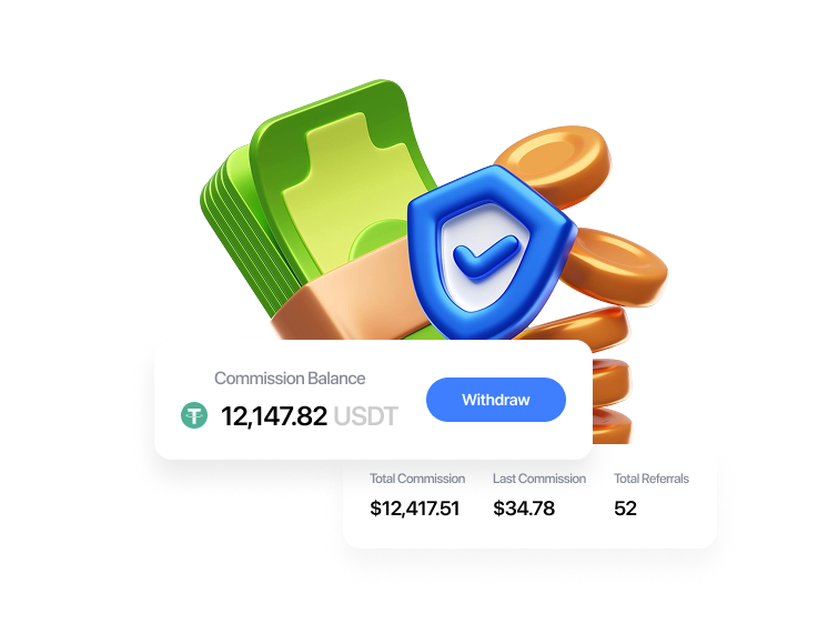 Pocket at least 25% commission on every referral’s swap, building a steady crypto income stream with no limits as your network grows.